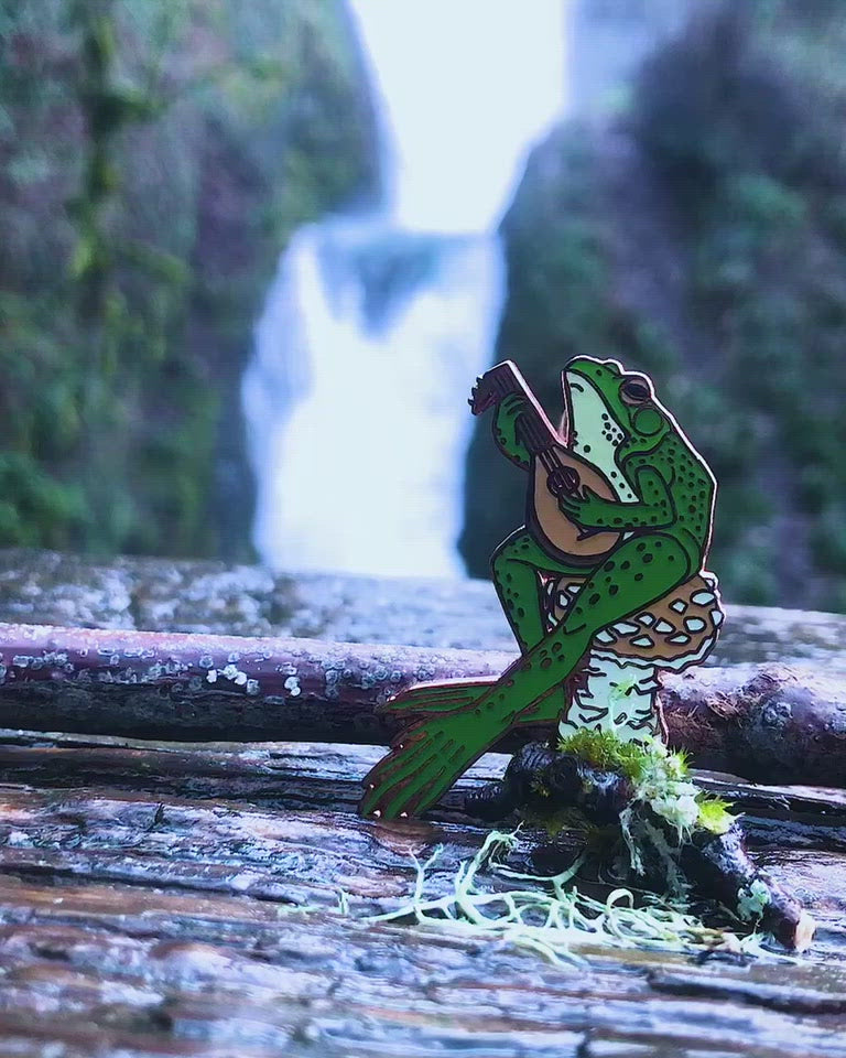 The Traveling Bard | Frog & Mushroom Enamel Pin